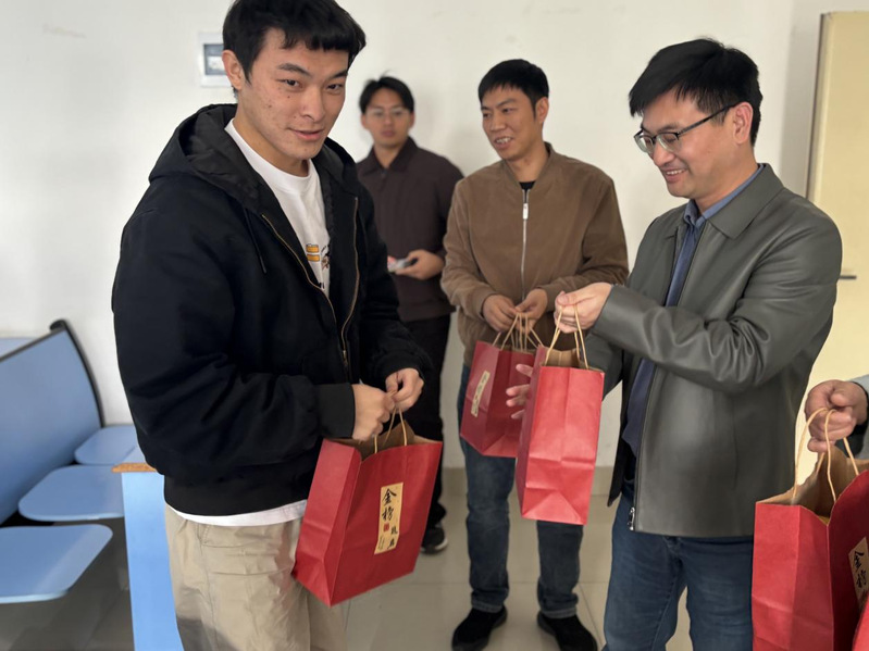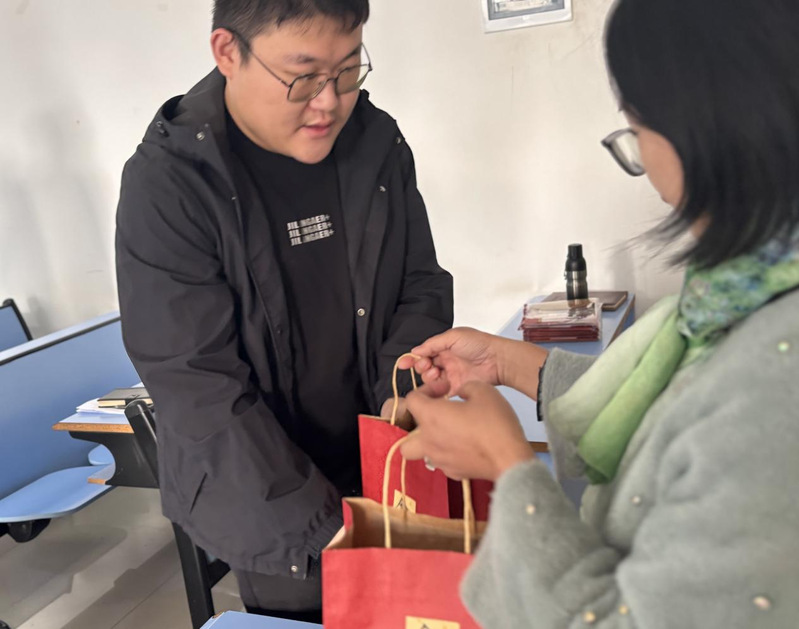 会后,邵艳群老师、熊雷老师与刘建杰老师共同向考研学子分发精心准备的慰问礼品,以切实行动表达学院对学生考研的高度重视与支持。